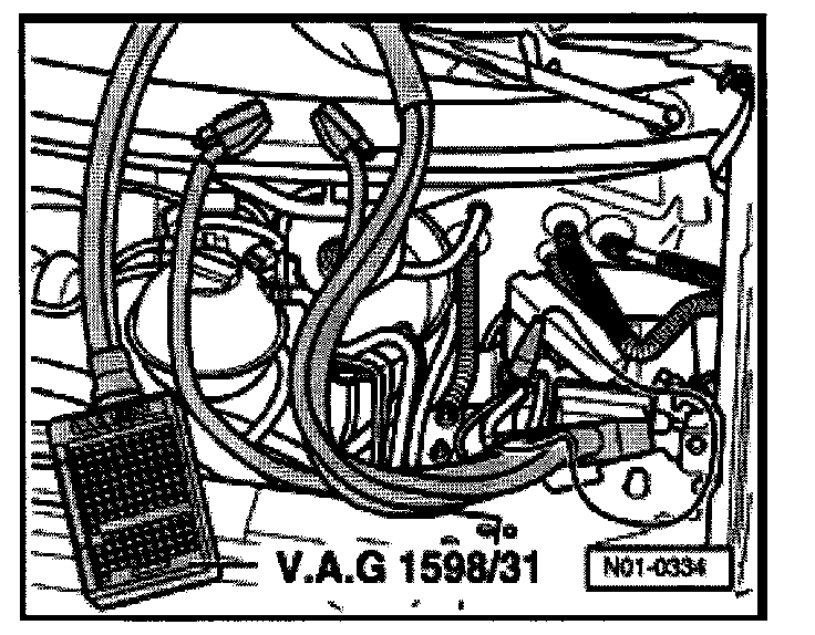 - Connect VAG1598/31 test box to control module wiring harness. Engine Control Module (ECM) is not connected.