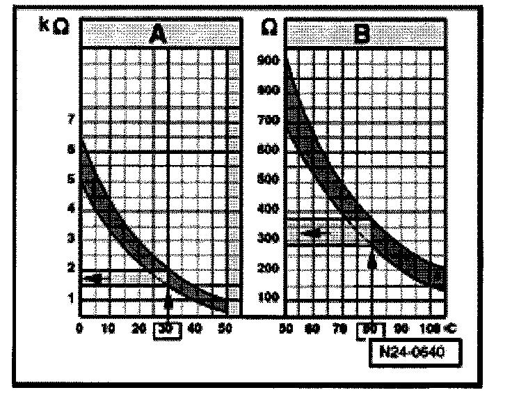 - 30 °C corresponds to a resistance of 1500 to 2000 Ohms