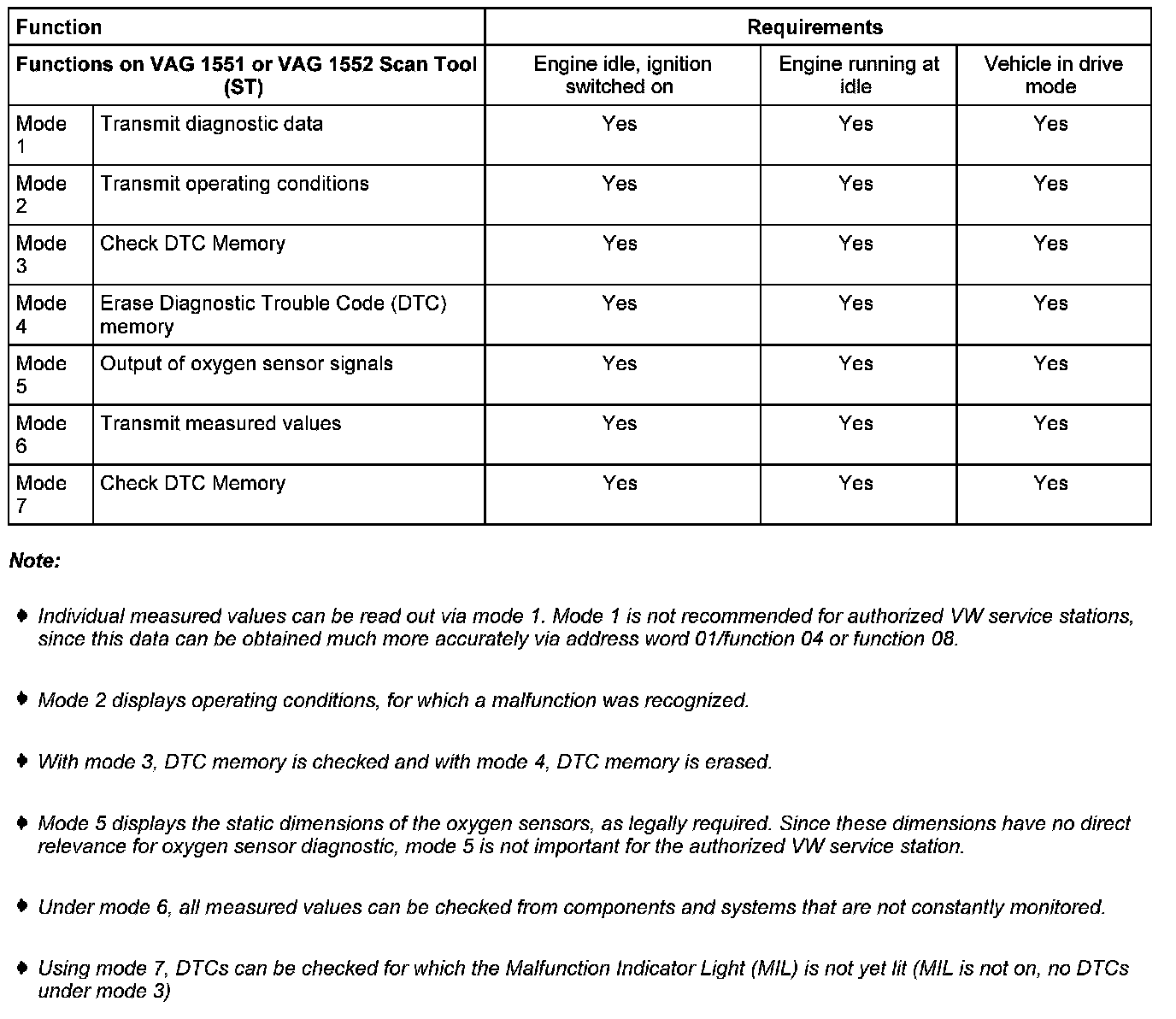 Selectable Functions (Modes) Under Address Word 33, CARB/OBD II