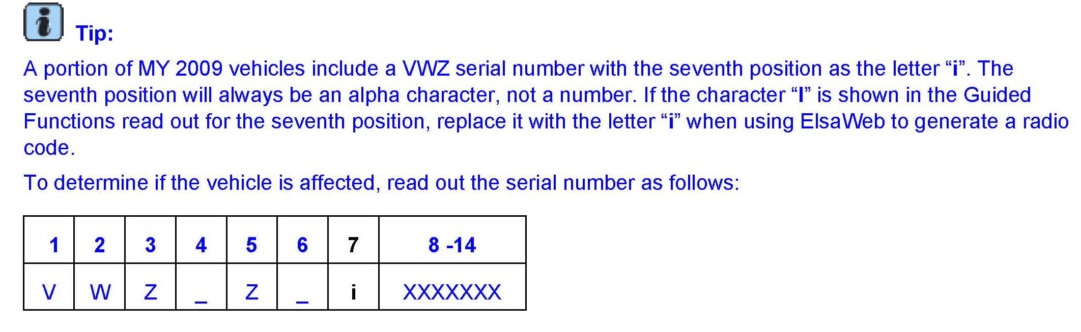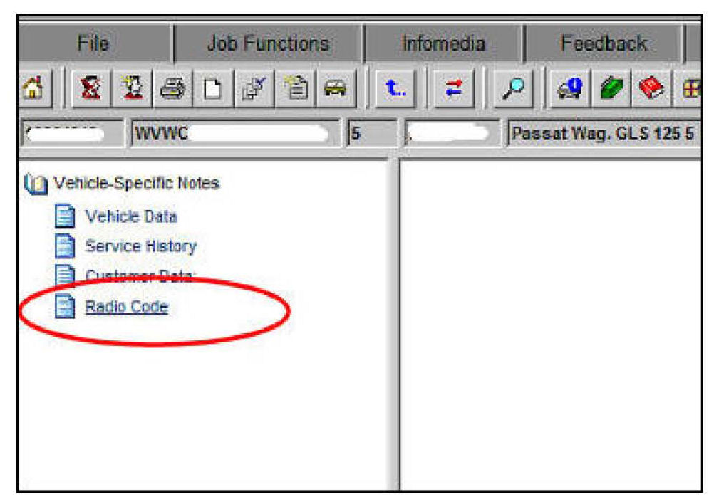 The radio anti-theft code can only be retrieved through the VAS diagnostic tester or through ElsaWeb. An active online connection and valid GeKo ID are required.