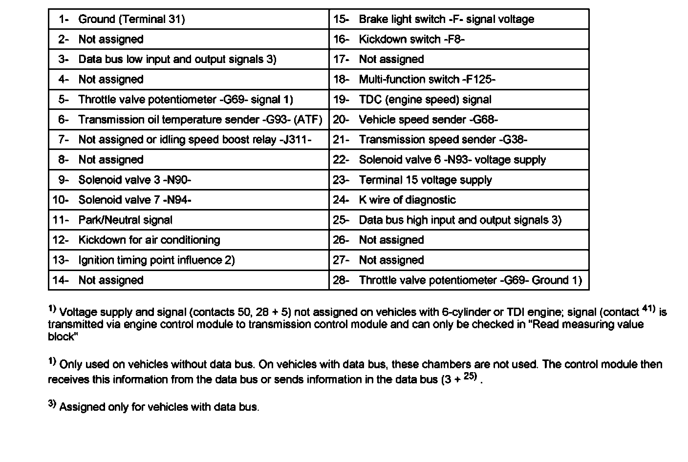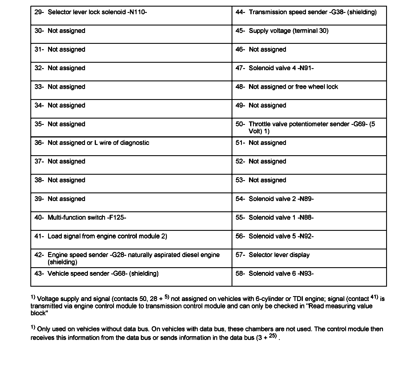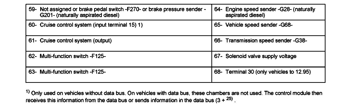 Control module -217- multi-pin connector (68 pin) assignment (sockets on V.A.G 1598/18)