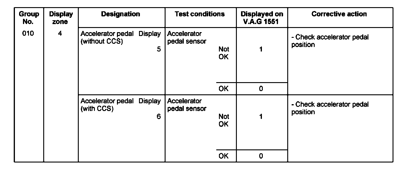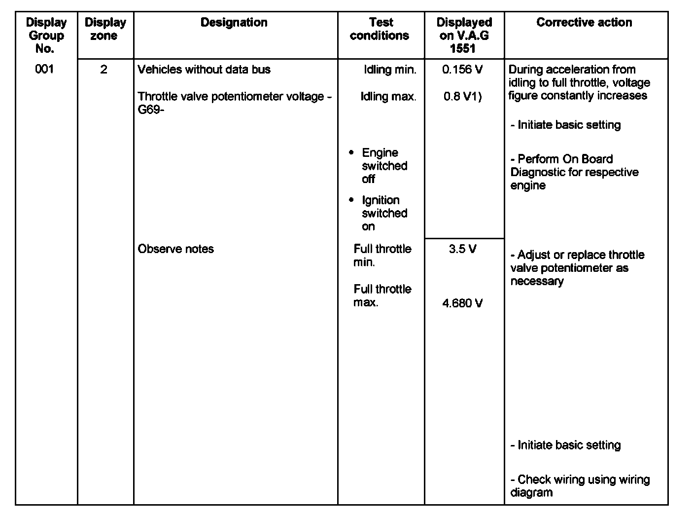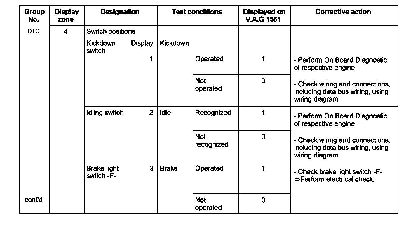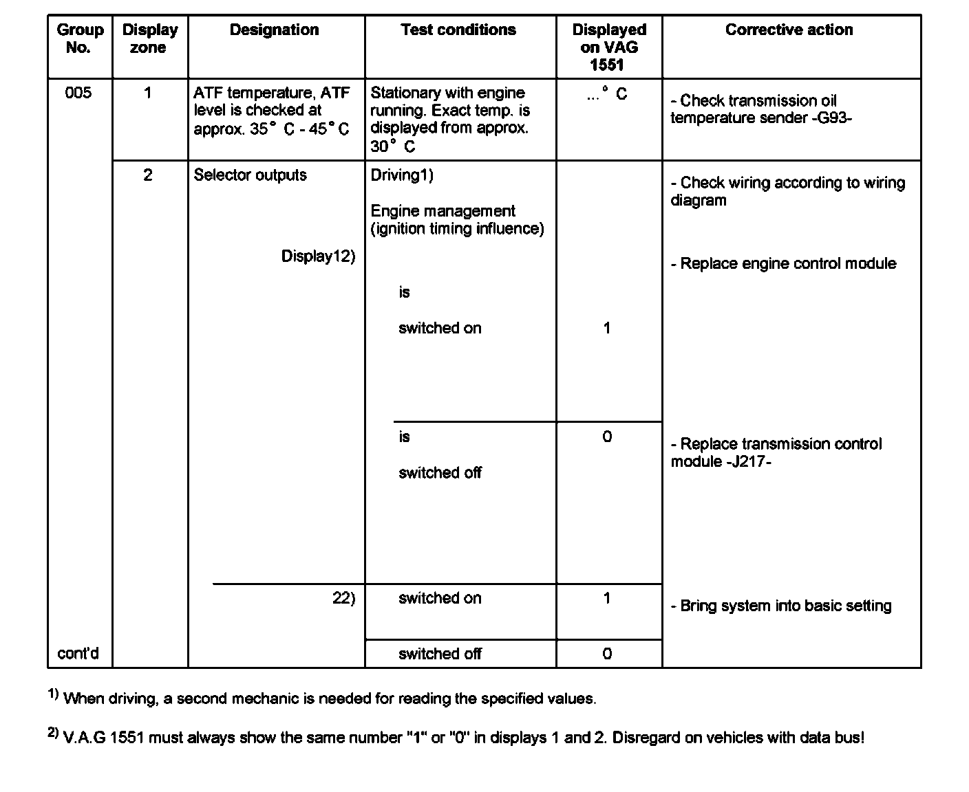 2)V.A.G. 1551 must always show the same number "1" or "0" in displays 1 and 2. Disregard on vehicles with data bus!