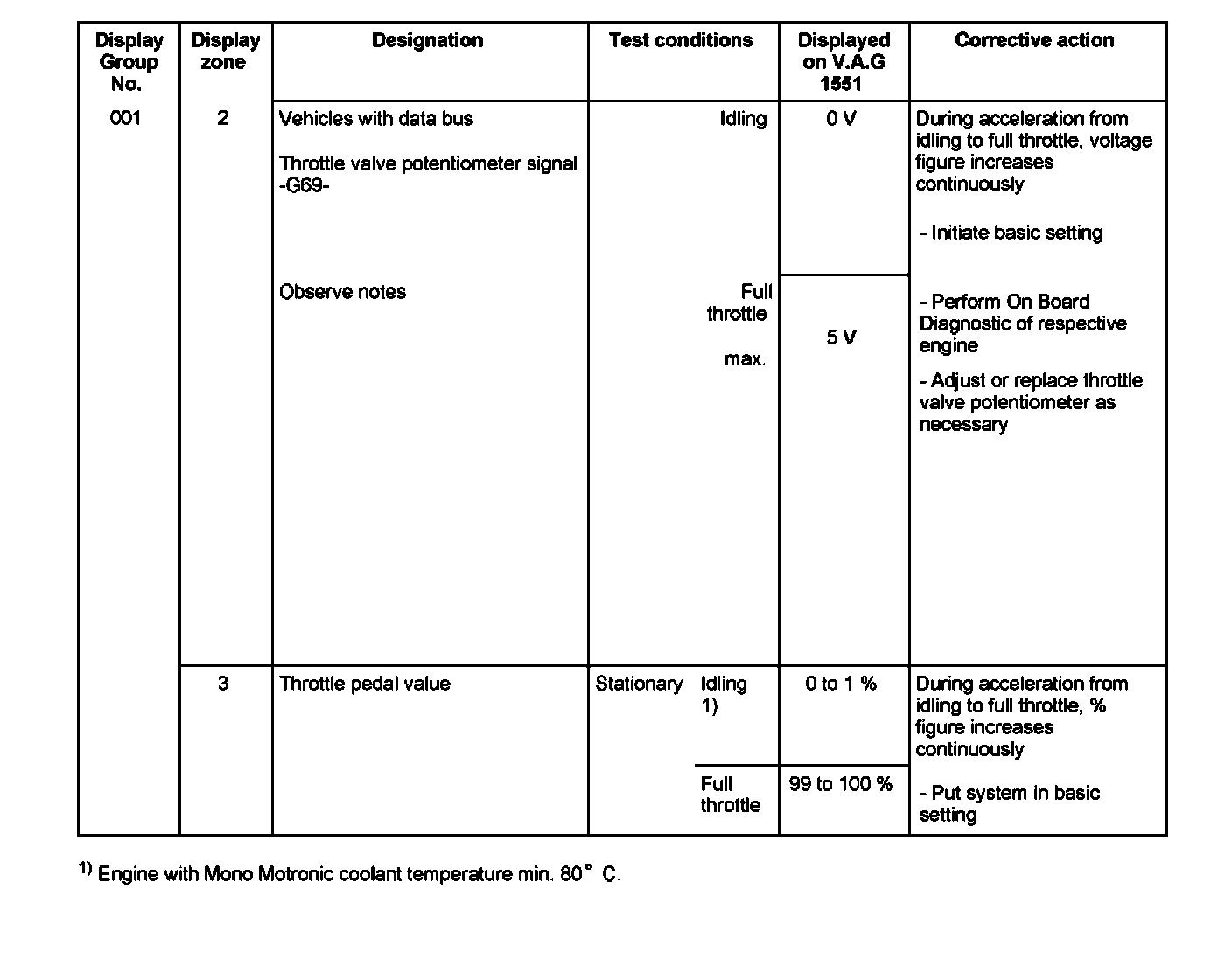 1)Engine with Mono Motronic coolant temperature min. 80° C.