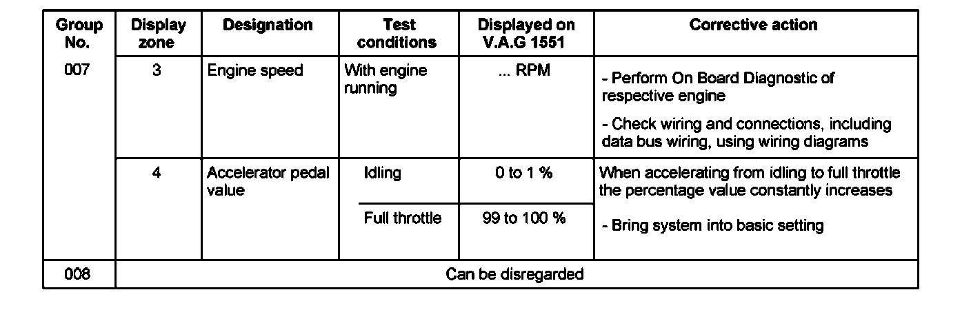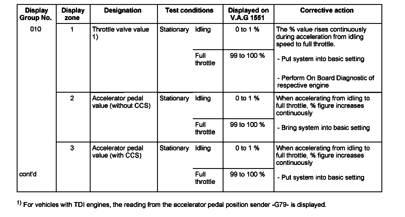 1)For vehicles with TDI engines, the reading from the accelerator pedal position sender -G79- is displayed.