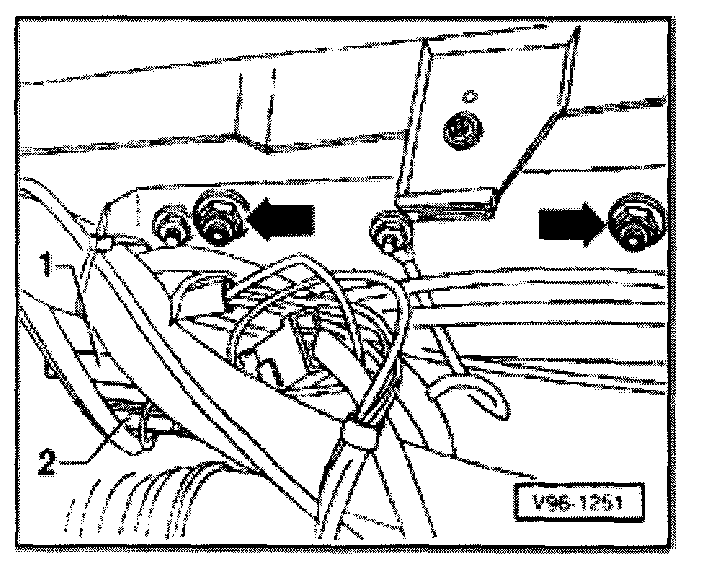 - Unbolt mounting plate with control unit -1- and relay -arrows-.