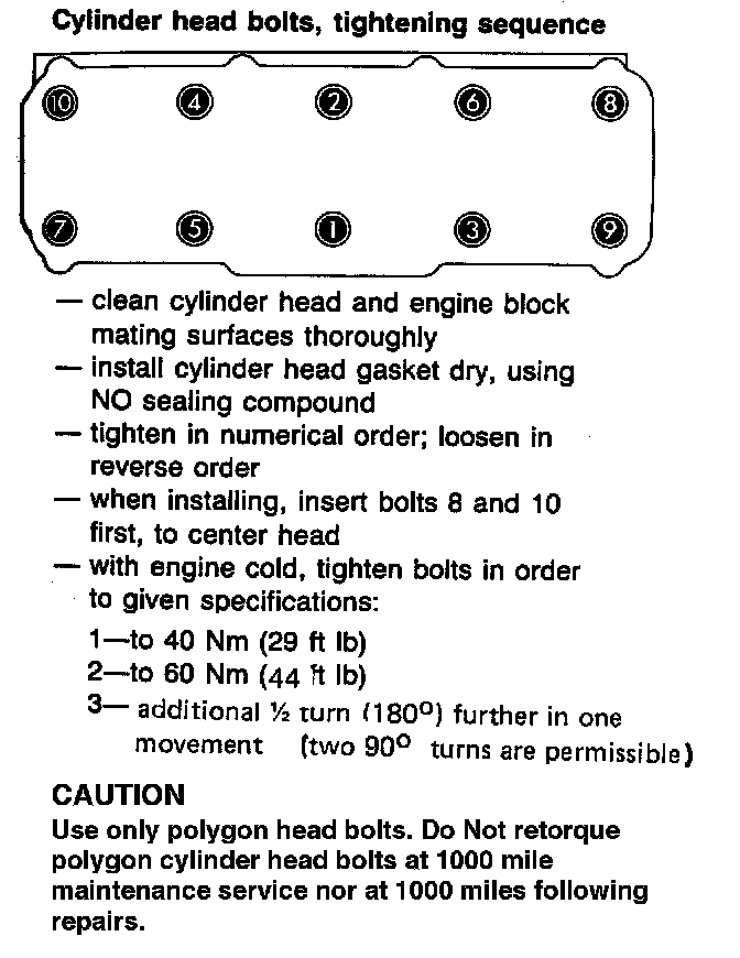 Cylinder Head Bolt Specifications: