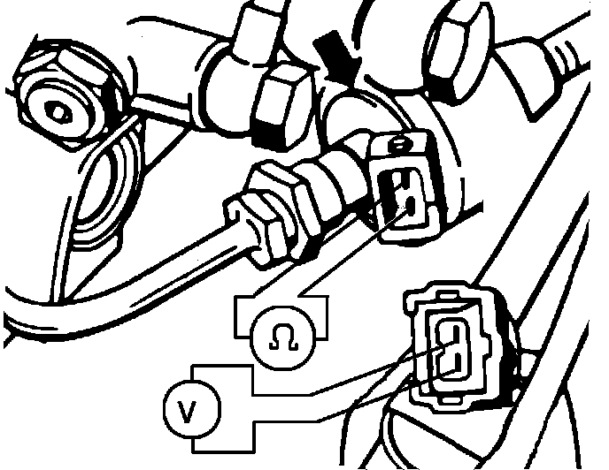 b. Connect a voltmeter across the terminals. Battery voltage should be available while fuel pump is energized, Fig. 34.