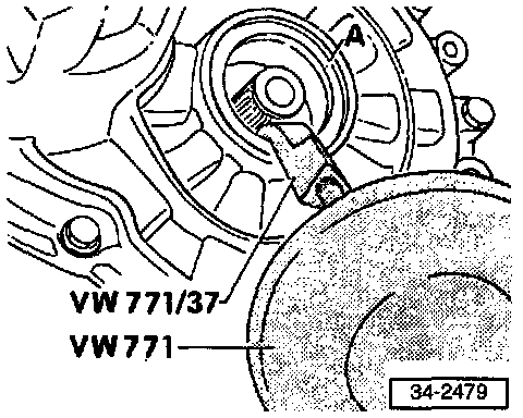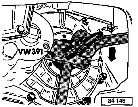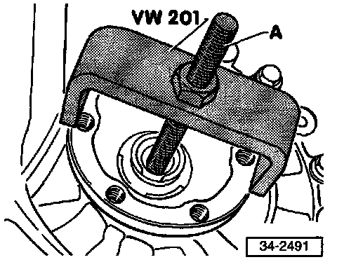 NOTE: If the spring behind the drive flange exerts too much force, special tool VW 201 should be installed to keep the flange in position while the circlip is installed.