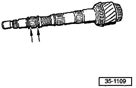 - Output shaft for vehicles with 2.0 liter, 85 kW (115 hp) engine with two circlips (arrows) for 4th gear