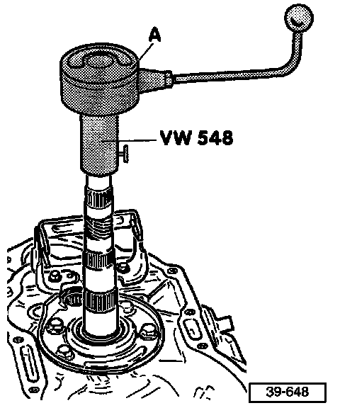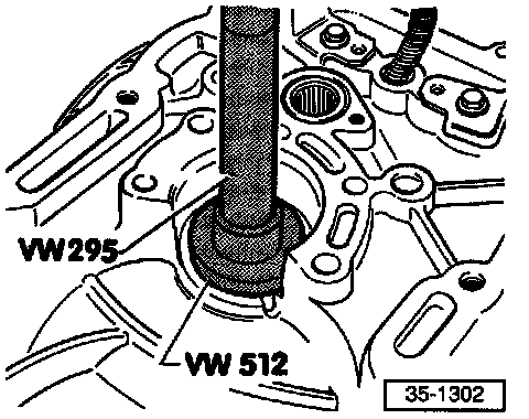 - Install a 0.65 mm thick adjustment shim and drive outer race of small tapered roller bearing into clutch housing until it bottoms