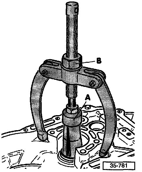 - Remove output shaft and extract outer race of small tapered roller bearing