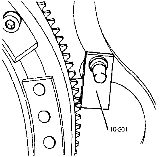 3. Remove the pressure plate from the flywheel using holding fixture VW 10-201 to secure the flywheel.