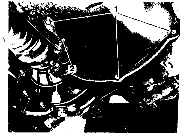 15. Remove bolts "2" from the small cover plate which are located behind the left drive flange.