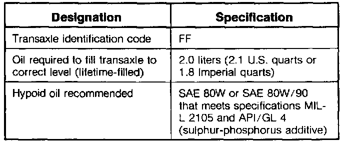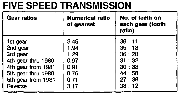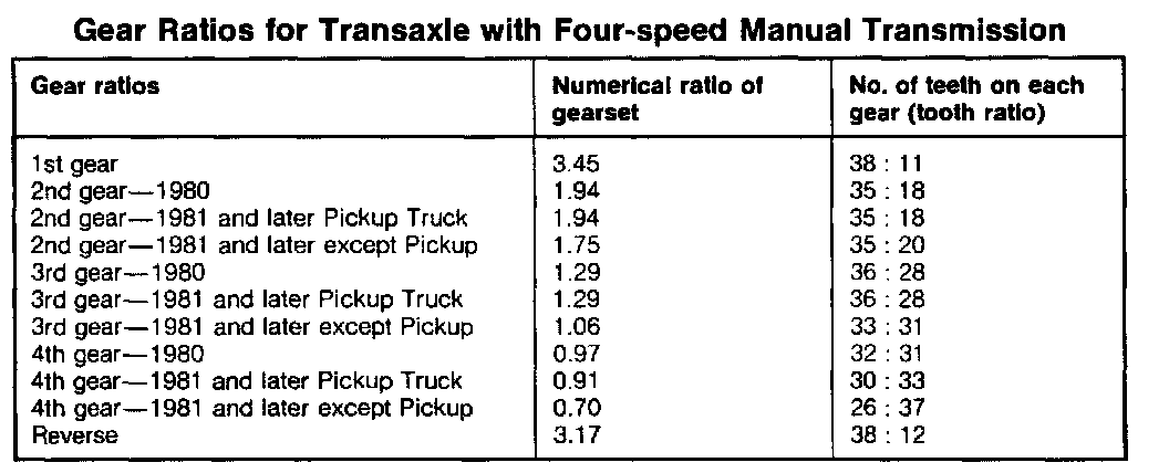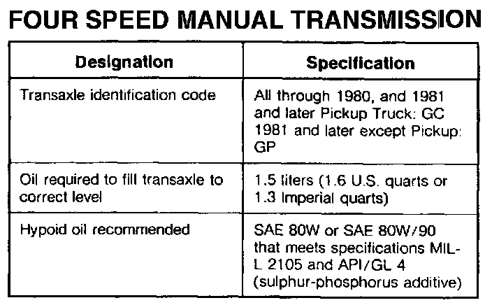 Manual Transmission SpecificationsFour Speed Manual Transmission Specifications: