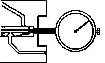 Injection timing is checked by determining injection pump plunger movement at piston TDC with a dial gauge, Fig. 26.