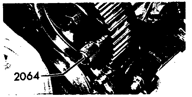 9. If the drive belt has neither broken nor jumped time, lock the injection pump sprocket in position as indicated. Otherwise, do not attempt to install the pin until you are ready to install the new drive belt. Injection pump sprocket is locked in position with special pin 2064.