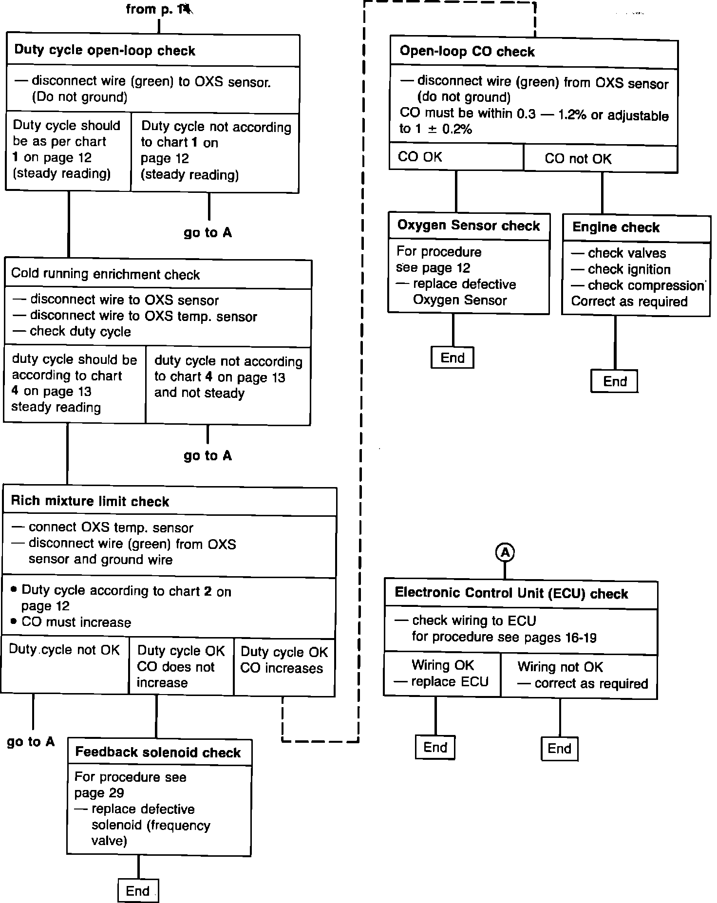 If hard starting, stalling, poor running, fluctuating idle speed, or poor fuel economy conditions occur, use this troubleshooting chart to check out electrical wiring and oxygen sensor circuits.