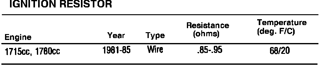 Ignition Resistor Specifications: