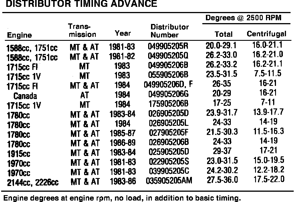 Distributor Timing Advance Specifications: