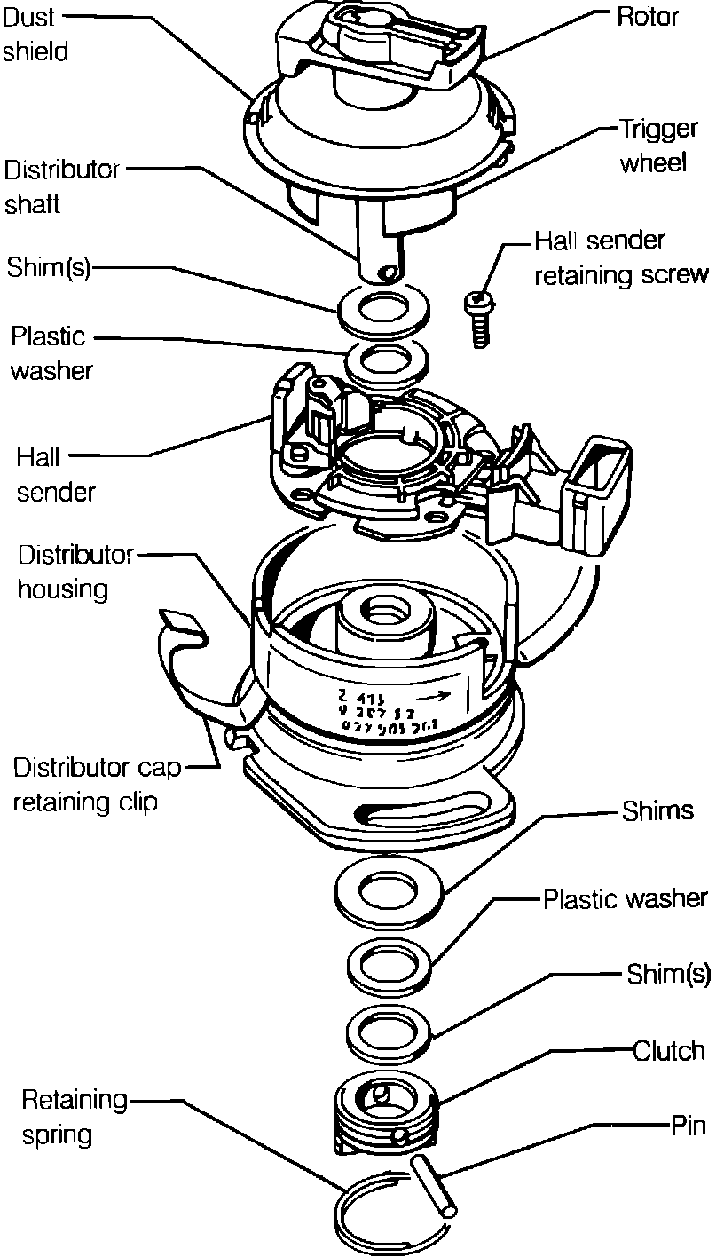 Pull the shaft, rotor, trigger wheel assembly out through the top of the distributor.
