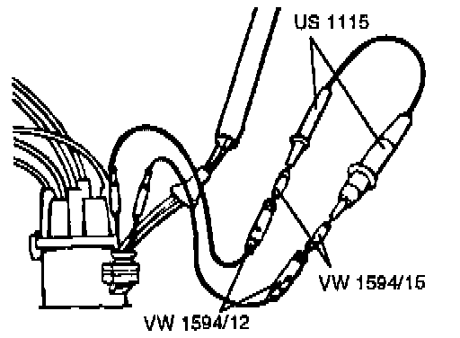 Testing Hall Sender and Coil Power Stage (Digifant I)The Hall sender and coil power stage should be tested if there is no spark at the spark plugs when tested. These tests also check the Digifant control unit response to the Hall sender signal. For these tests, the spark plug wires and ignition coil should be in good condition. See Testing Coil and Spark Plug Wires. The Hall sender connector is on the side of the distributor. The coil power stage is located atop the coil.