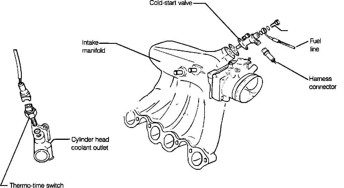 The Thermo-time Switch is located in the cylinder head coolant outlet.