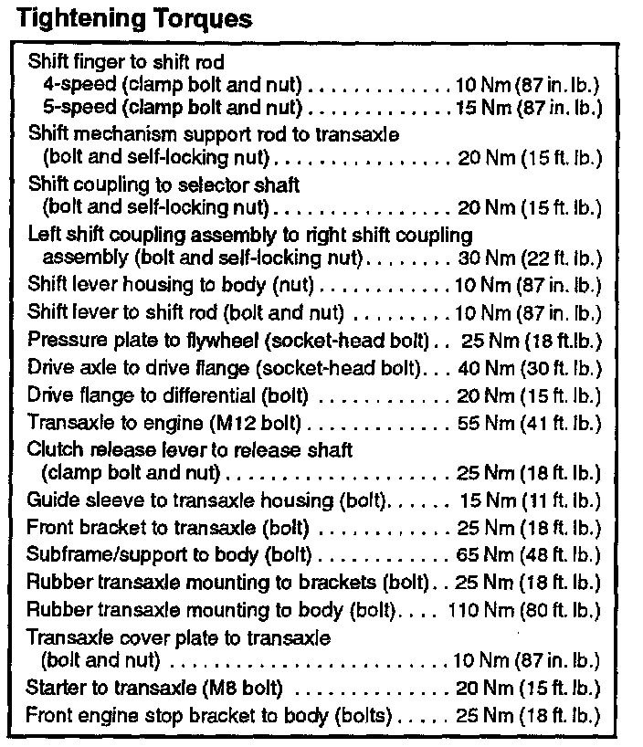 Transmission Torque Specifications