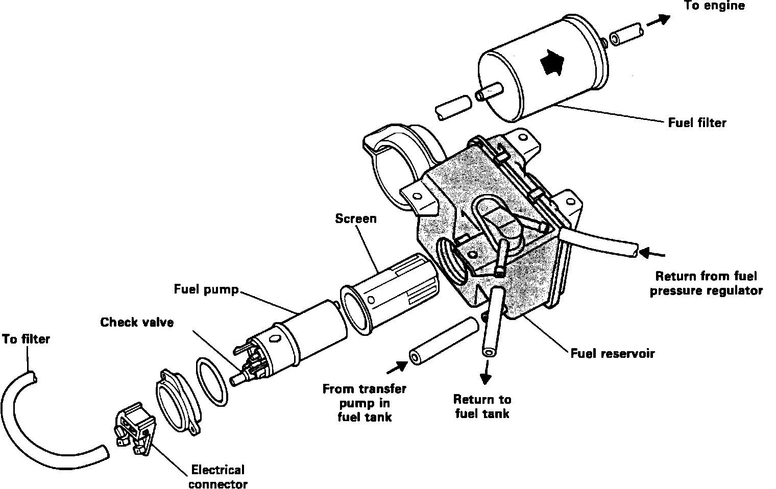 2. Loosen and then remove the inlet and outlet fuel lines from the filter.
