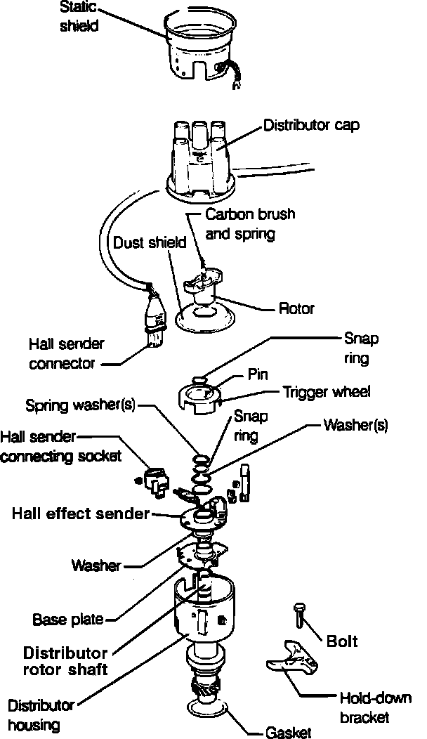 1. Remove the distributor cap and rotor.