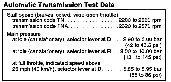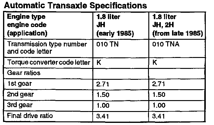 Automatic Transaxle Specifications: