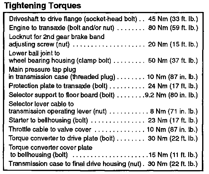Automatic Transmission Torque Specifications