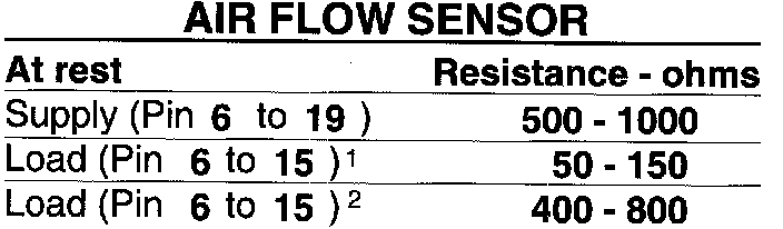 1 Flap on air flow sensor closed or air flow sensor plate at rest position. Resistance increases as flap or plate opens.