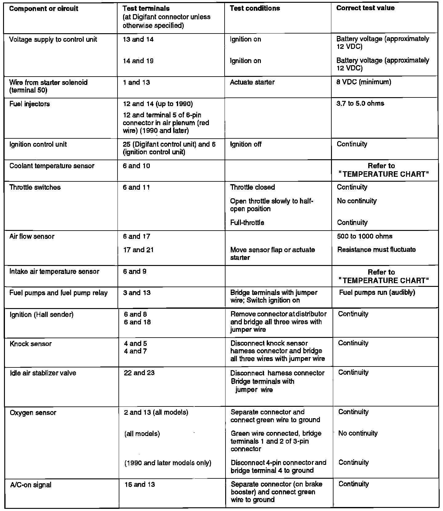 DIGIFANT II PINOUT / TEST CHART