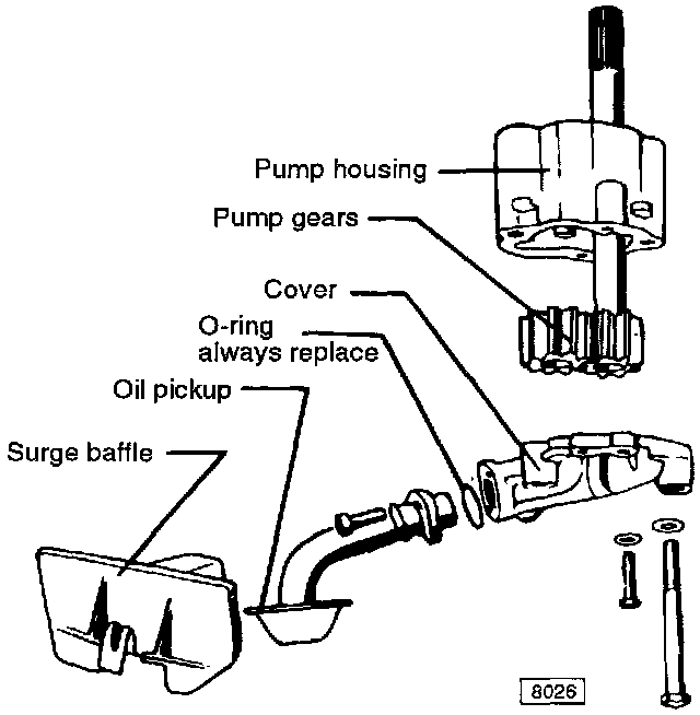 Oil Pump, Note Long Mounting Bolts & Short Cover Bolts: