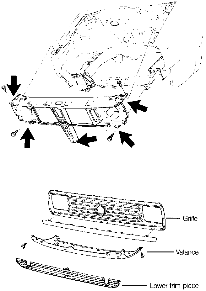 8. Remove the grill and the front apron. Remove the radiator with air ducts and fan shroud.