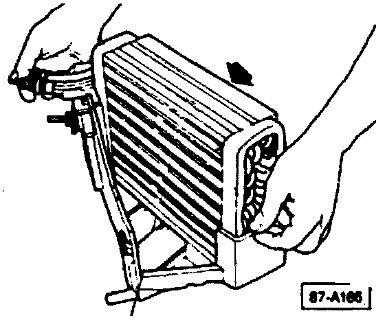 - Pry off retaining clips for evaporator housing halves, using a screwdriver.