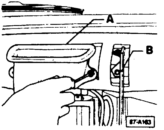 - Disconnect A/C lines at expansion valve (B), cap openings immediately.