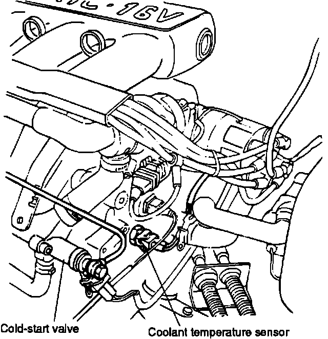 1. With the ignition "OFF", remove the electrical connector at the coolant temperature sensor.