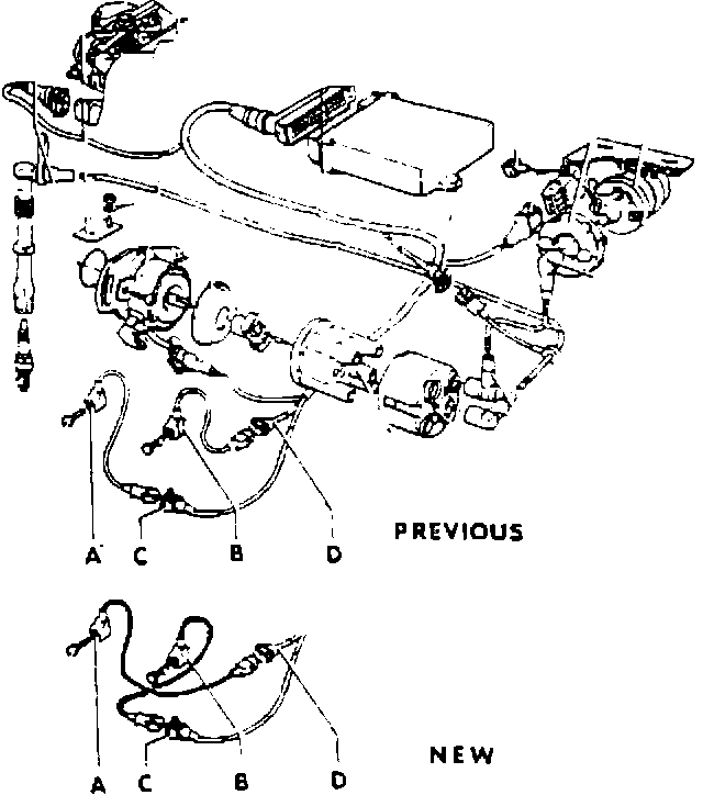 - Disconnect knock sensor B cable from connector D, located behind distributor, and connect to connector C near oil filter.