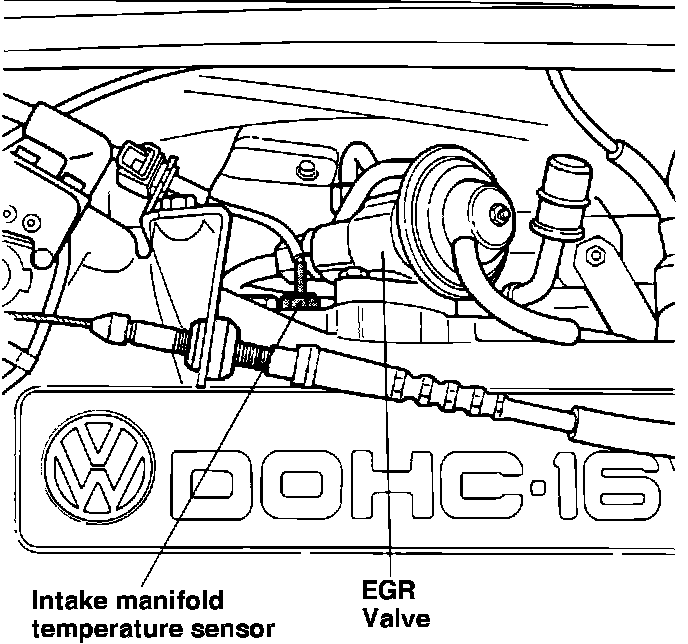 An EGR temperature sensor is located in the intake manifold near the EGR valve. It is used to inform the CIS-E Motronic control unit if the EGR system is functioning properly.
