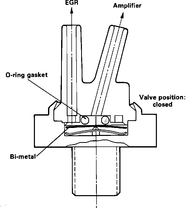 A thermo-Vacuum valve, is installed in the primary vacuum supply line to the vacuum amplifier. This valve will open and allow the EGR valve to operate when the coolant temperature reaches approximately 50°C (122°F). The valve will close when the coolant temperature is below approximately 27°C (81°F).