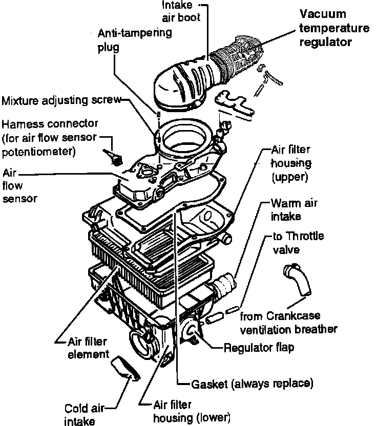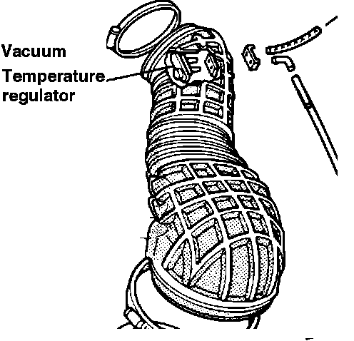 The temperature control valve, (located in the intake air boot near the throttle housing) controls the amount of vacuum applied to the air regulator actuator.