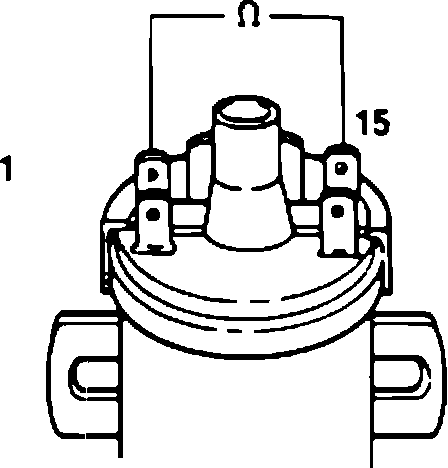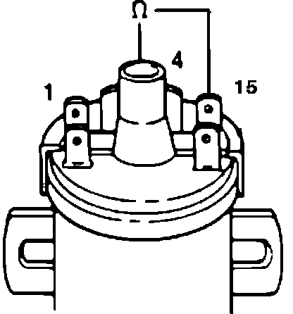 6. Connect the ohmmeter between terminal 4 (center) and 15 (+). Reading should be: