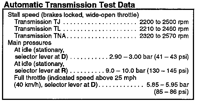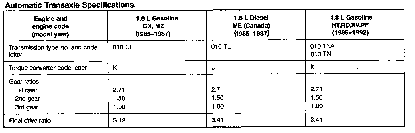 Automatic Transaxle Specifications: