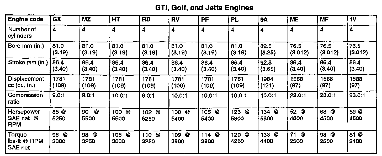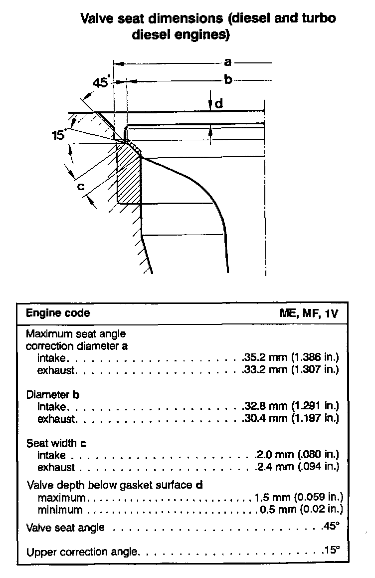 Valve Seat Specifications (Diesel And Turbo Diesel):