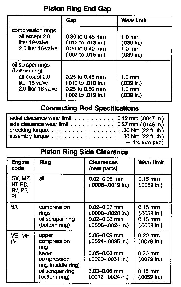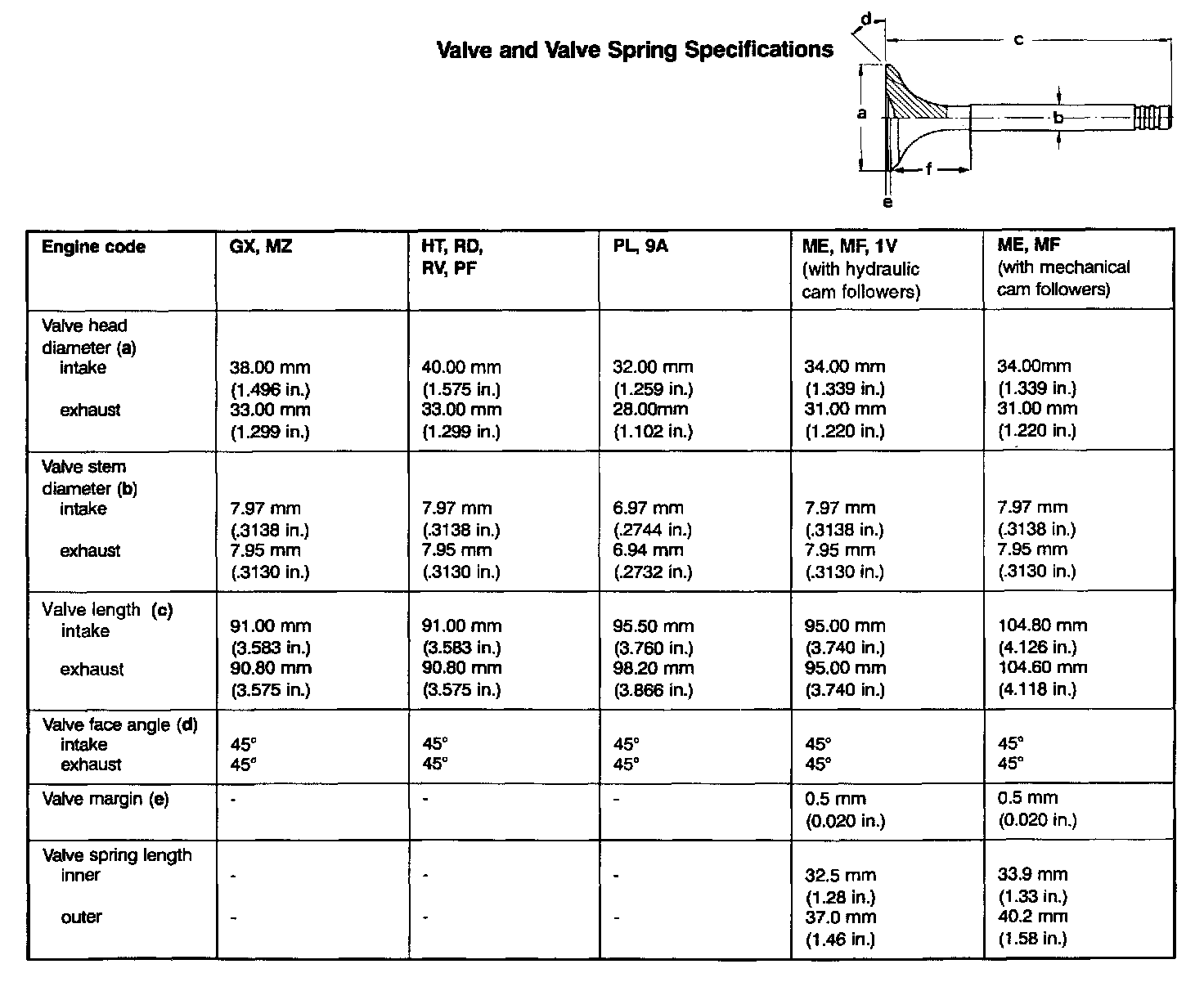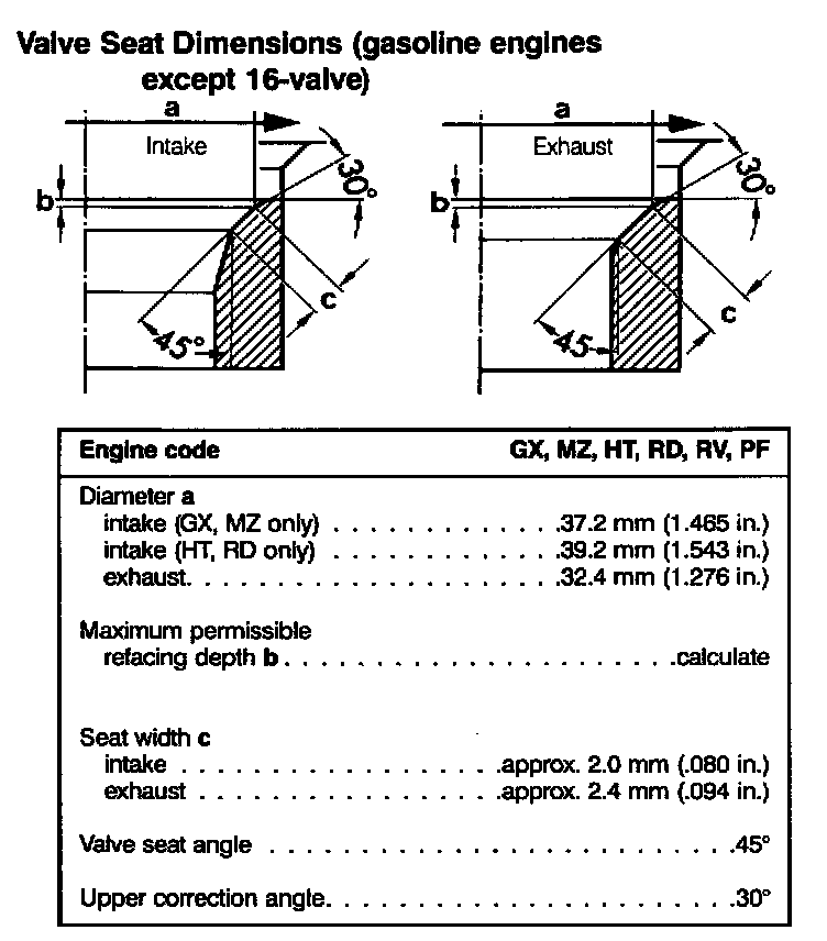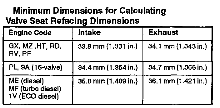 Valve Seat Dimensions (Gasoline,except 16-Valve Engines):