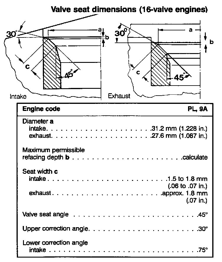 Valve Seat Dimensions (16-Valve Gasoline Engines):