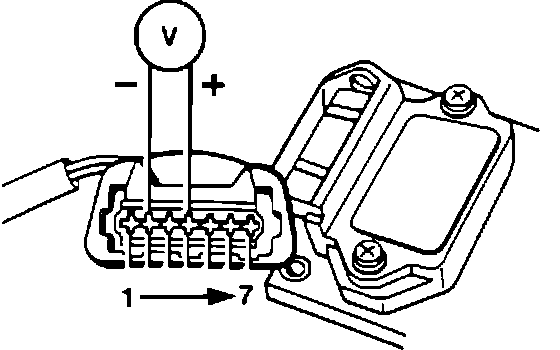 8. Connect a voltmeter between coil terminals 1 (-) and 15 (+).