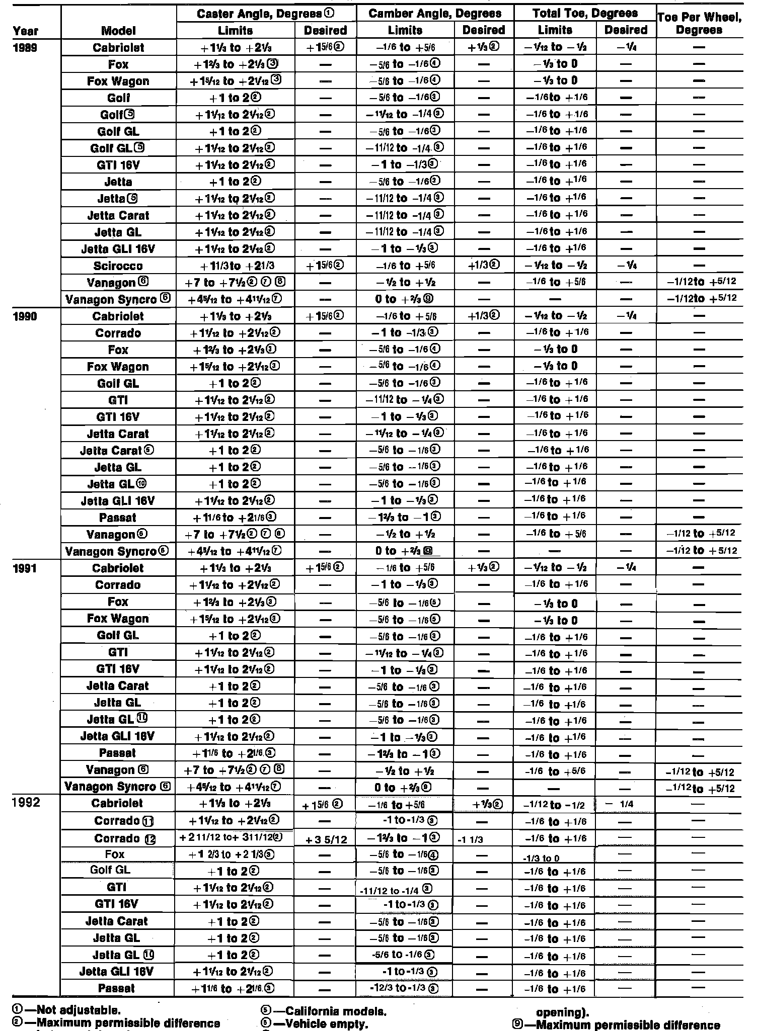 �kFront Wheel Alignment Specifications: