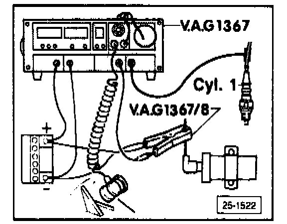 - connect VAG 1367 engine tester using VAG 1367/8 inductive pickup